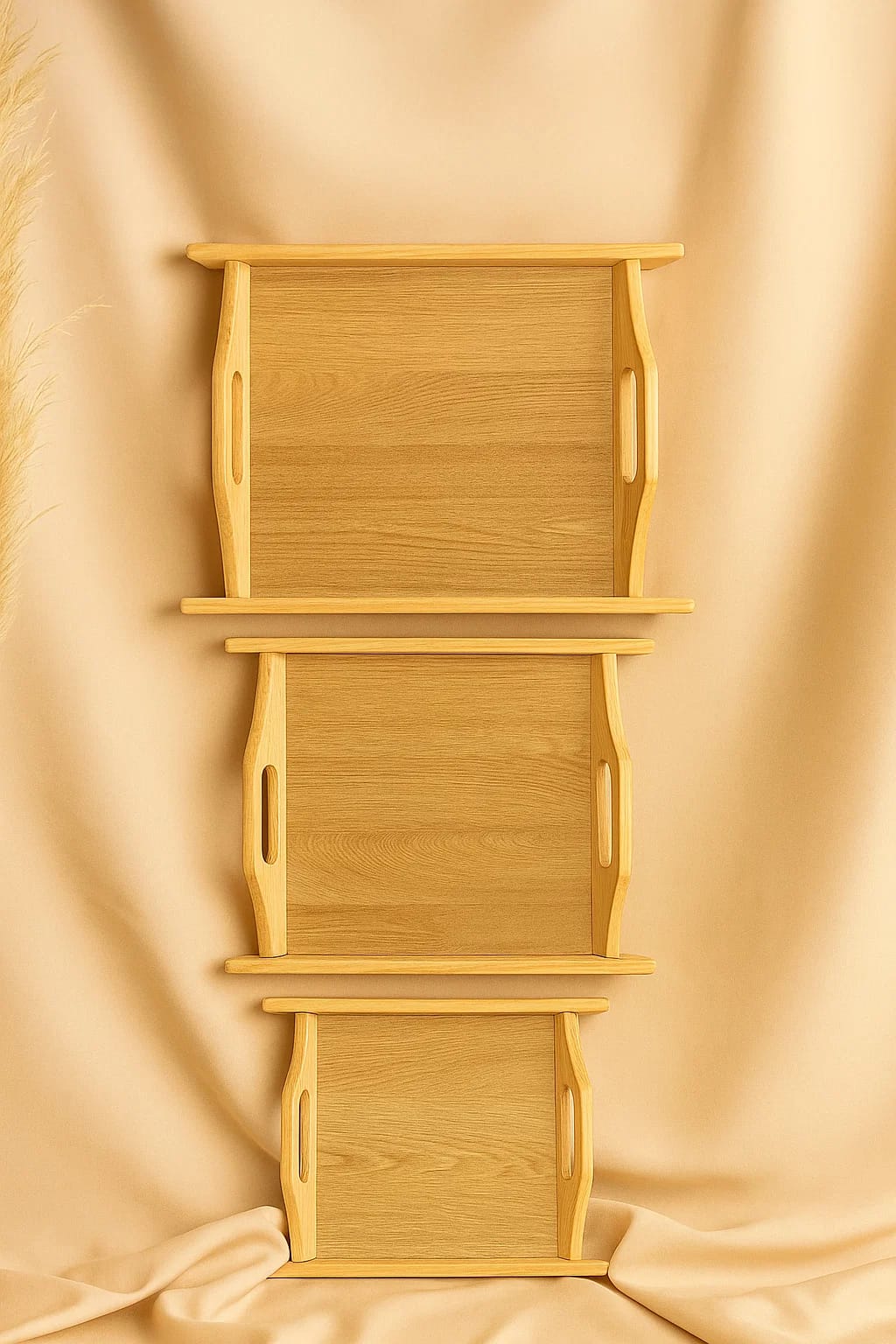 Add warmth and sophistication to your living space with this beautifully crafted wooden tray set – perfect for daily use or as a thoughtful gift.